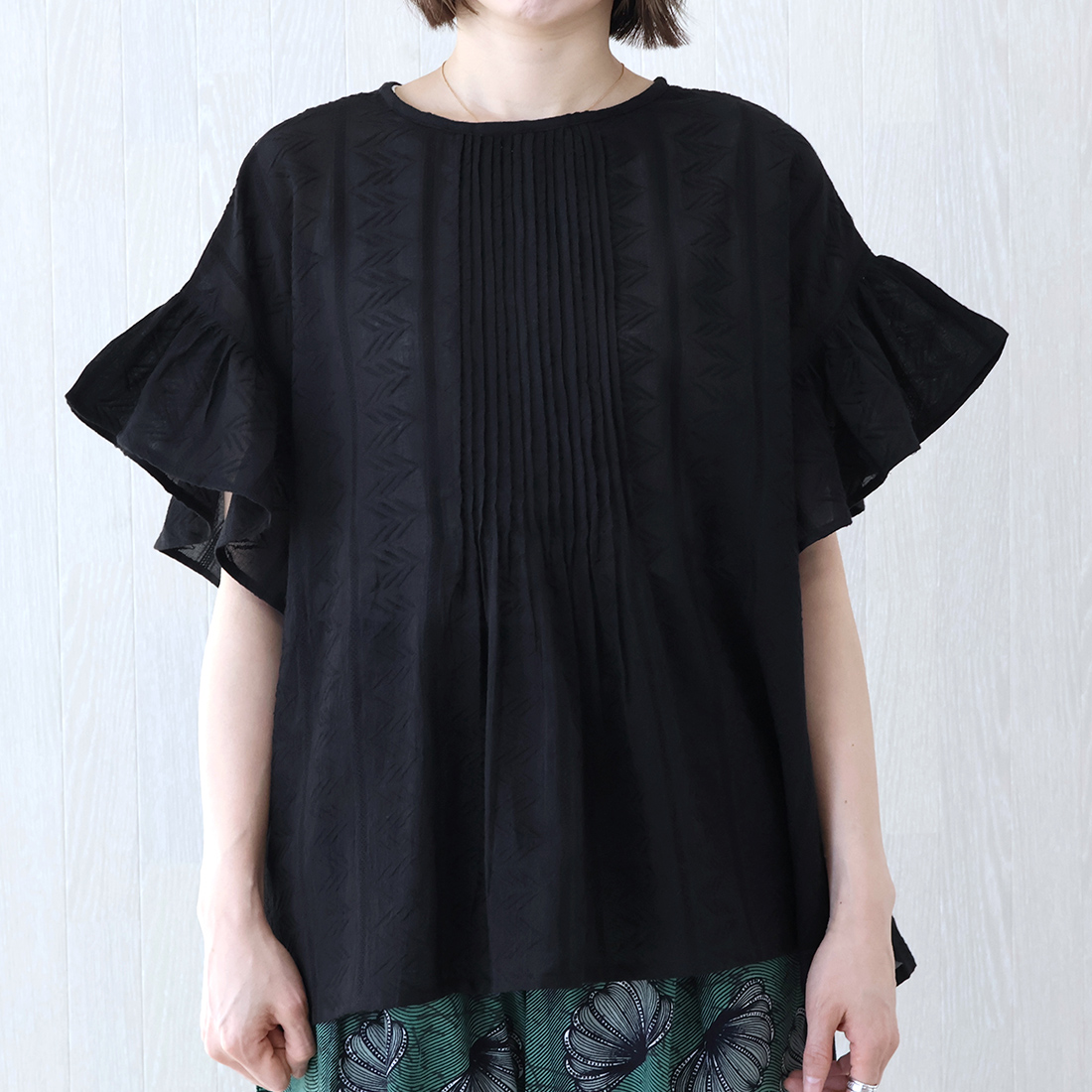 シンプルながらもボリュームのある袖のフリルがアクセントに。