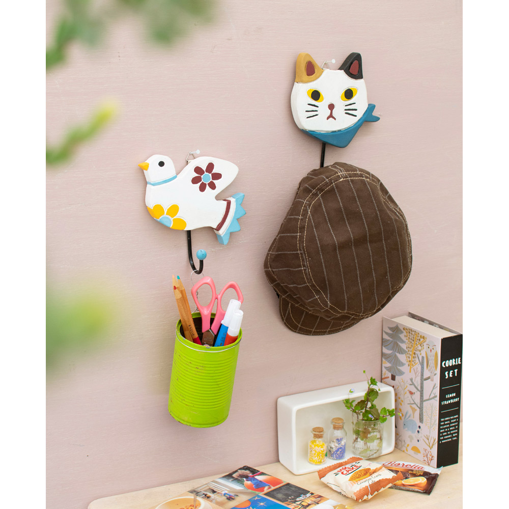 チーク製のかわいいモチーフにアイアンのフックを付けたカービングフックです。