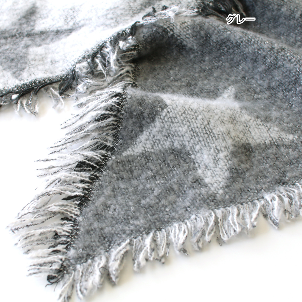 大きなスターが印象的なショールです。首元に巻けば可愛く元気な印象に、斜めのカットをいかして羽織ればカッコいいスタイルに!