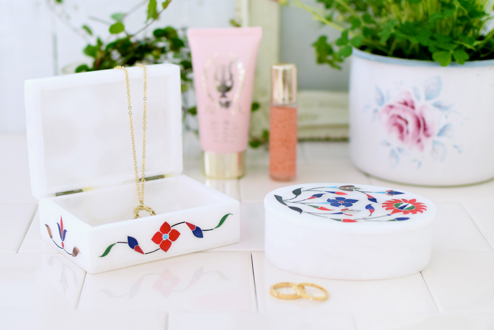 清潔感があり爽やかな雰囲気を持ったボックスです。アクセサリーや印鑑など細かい物の整理にオススメ。