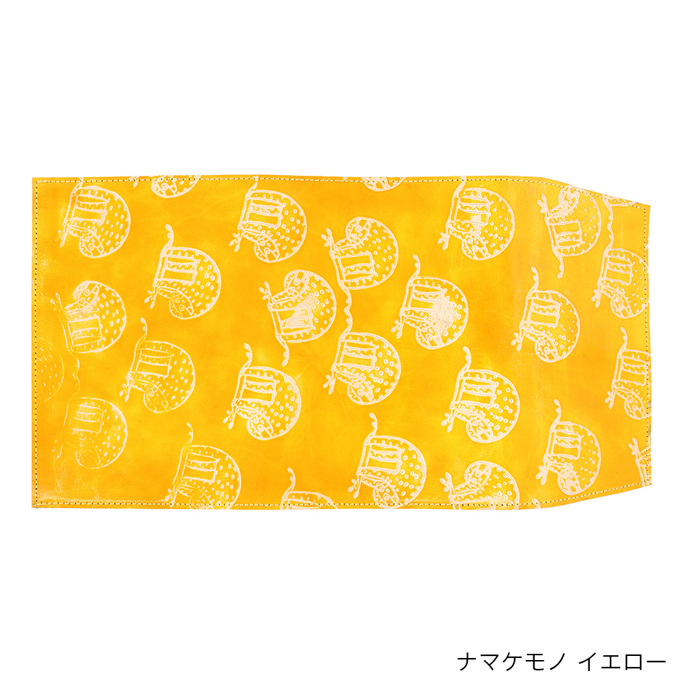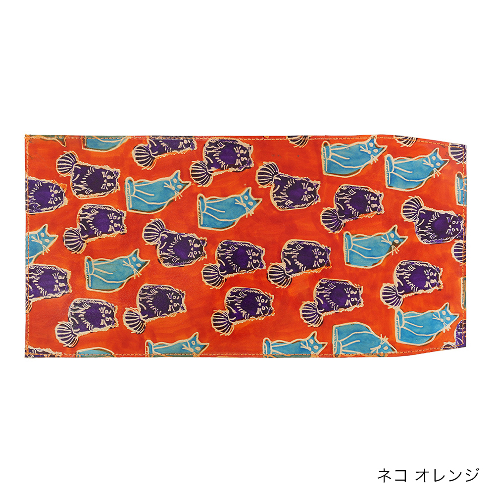山羊革に型押しでレトロシックなアニマルモチーフをデザインして、カラフルにペイントしたブックカバーです。ハンドペイントならではのムラ感や色味の違いが味わい深いです。