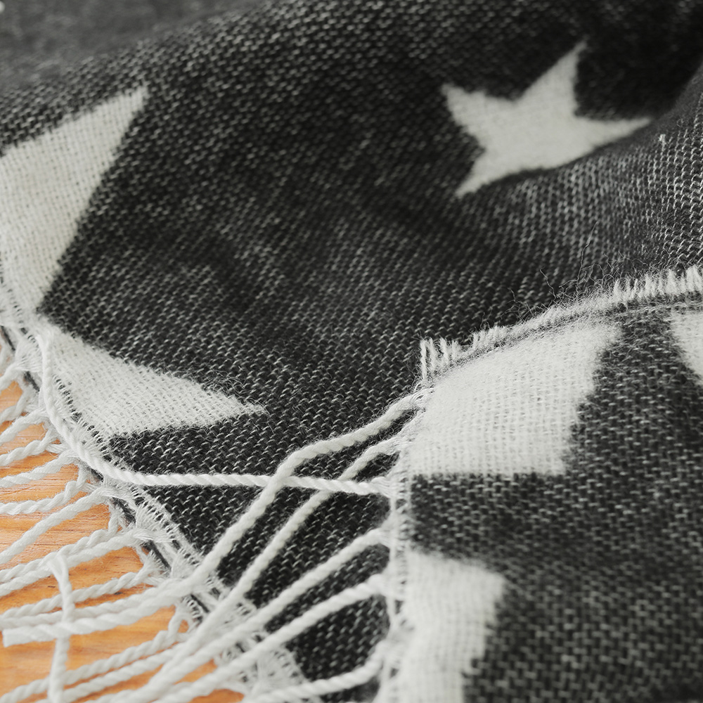大小のスターが印象的なショールです。表裏で反対色になっているので、巻き方によって雰囲気をアレンジできます。