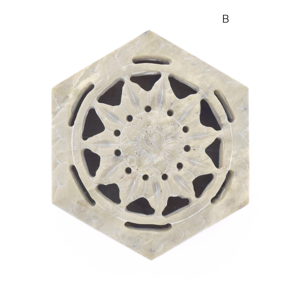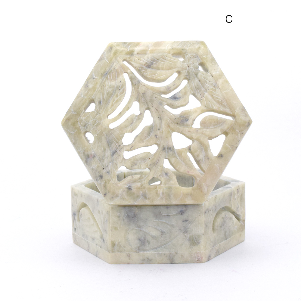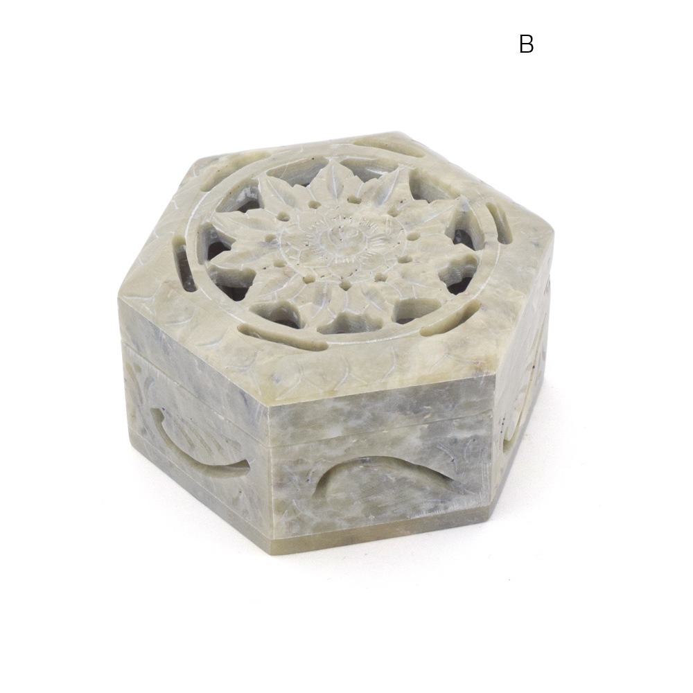 石造建築、彫刻の歴史が深いインドの職人さんの手仕事によるソープストーン細工の六角形ボックス。