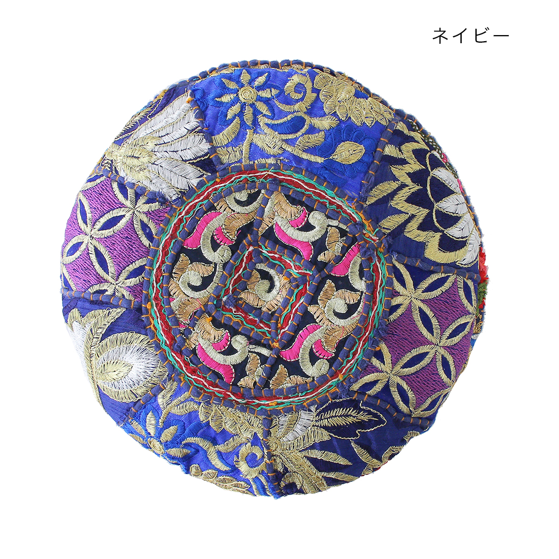 インドの古布を使用した豪華なスツールカバー。オンリーワンの布の組み合わせが楽しい。