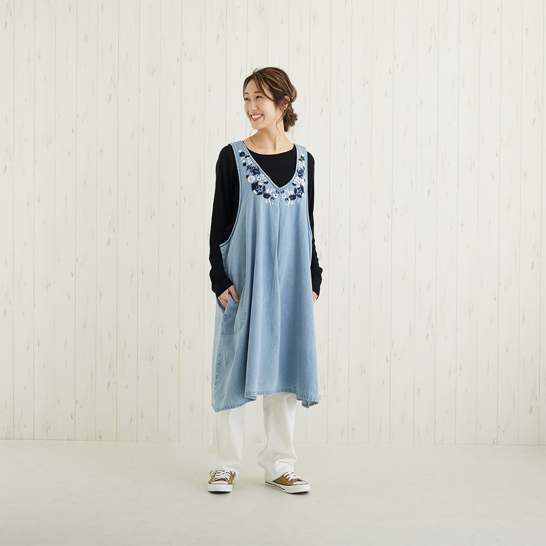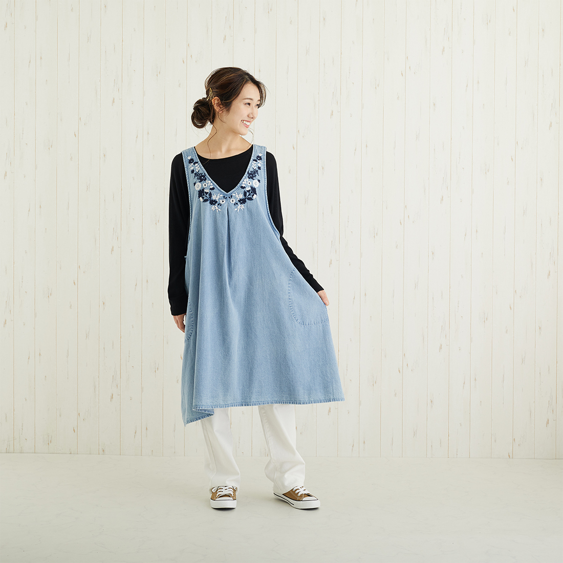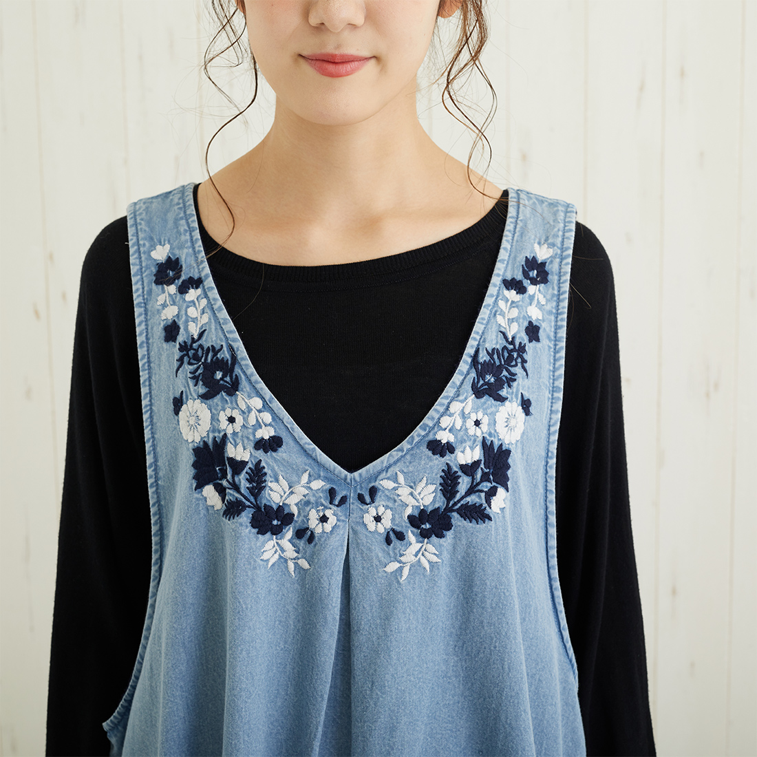 デニムに花柄の刺繍を施したお洋服のようなデザインなので、そのままちょっとそこまでおでかけもできちゃいます。