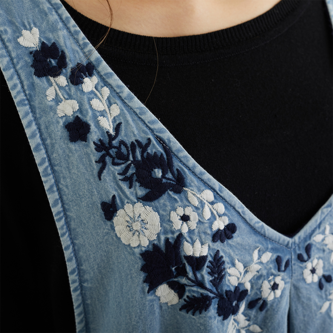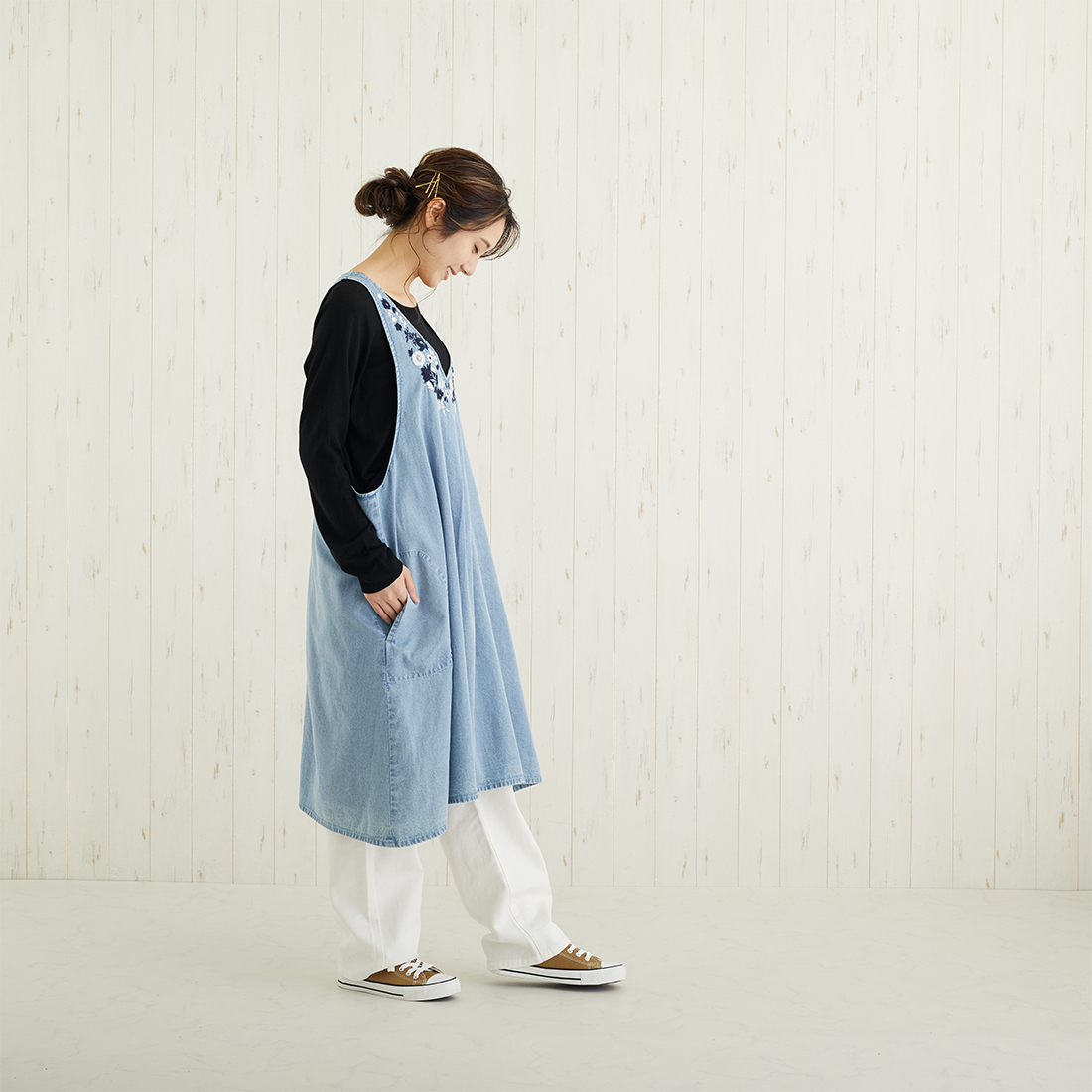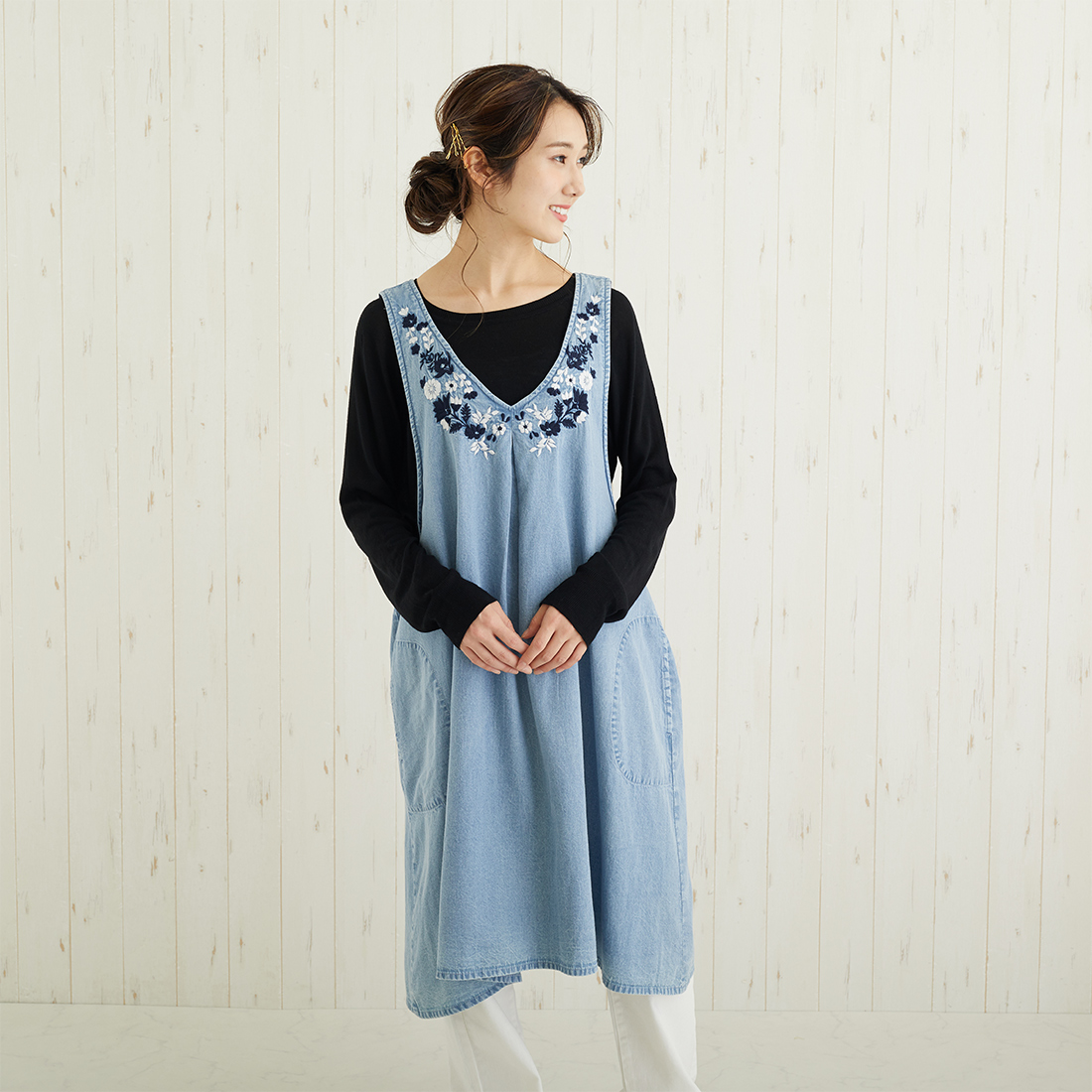 デニムに花柄の刺繍を施したお洋服のようなデザインなので、そのままちょっとそこまでおでかけもできちゃいます。