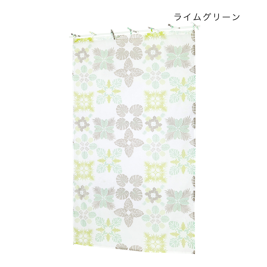 オパール加工によりポリエステルの部分だけを残して透かし柄を描いているので、映し出される影も素敵です。モンステラをモチーフにした南国の雰囲気のカーテンです。