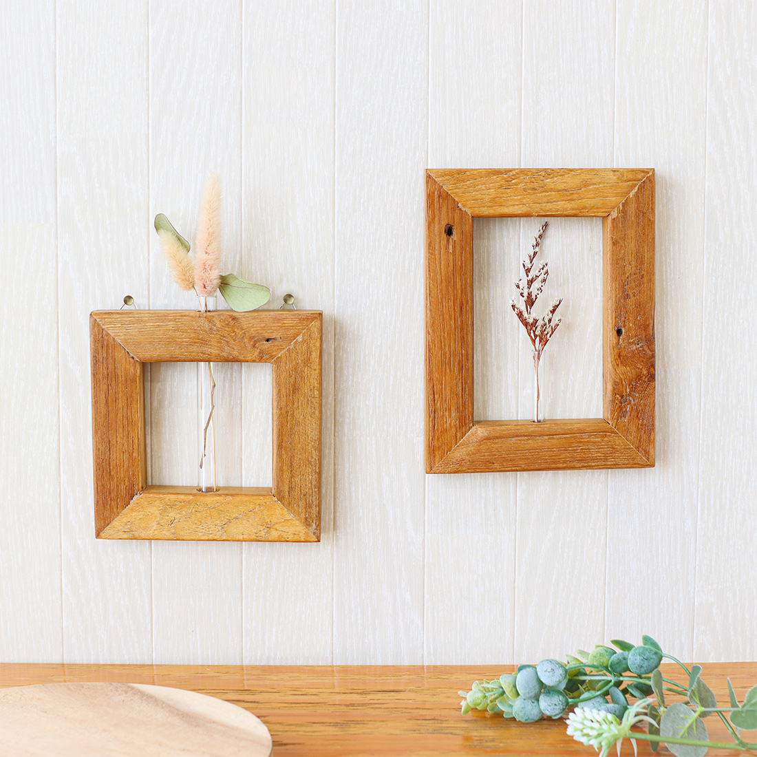 木の温もりと植物のグリーンに癒されるフラワーベース