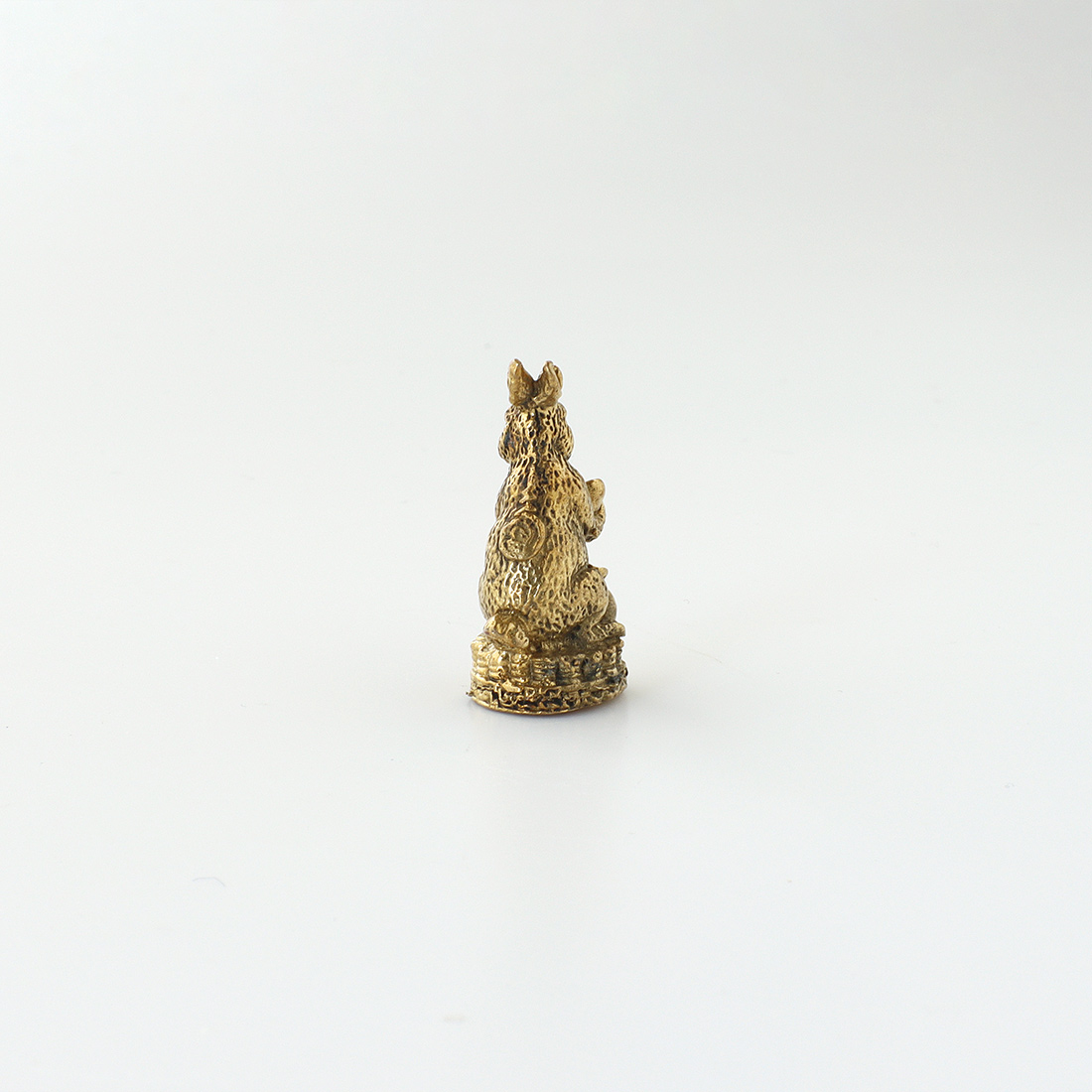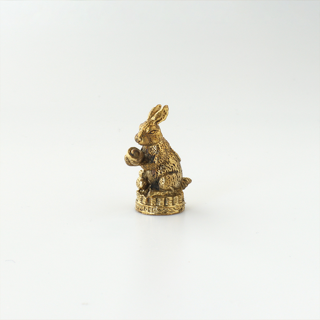真鍮でできた小さなウサギの置物です。コインほどのサイズにもかかわらず細かな装飾が施されていて、つい手に取って眺めたくなります。机の上や棚に飾るのはもちろん、兎年の方はお守り代わりに巾着などに入れて持ち歩くのもいいかも!?