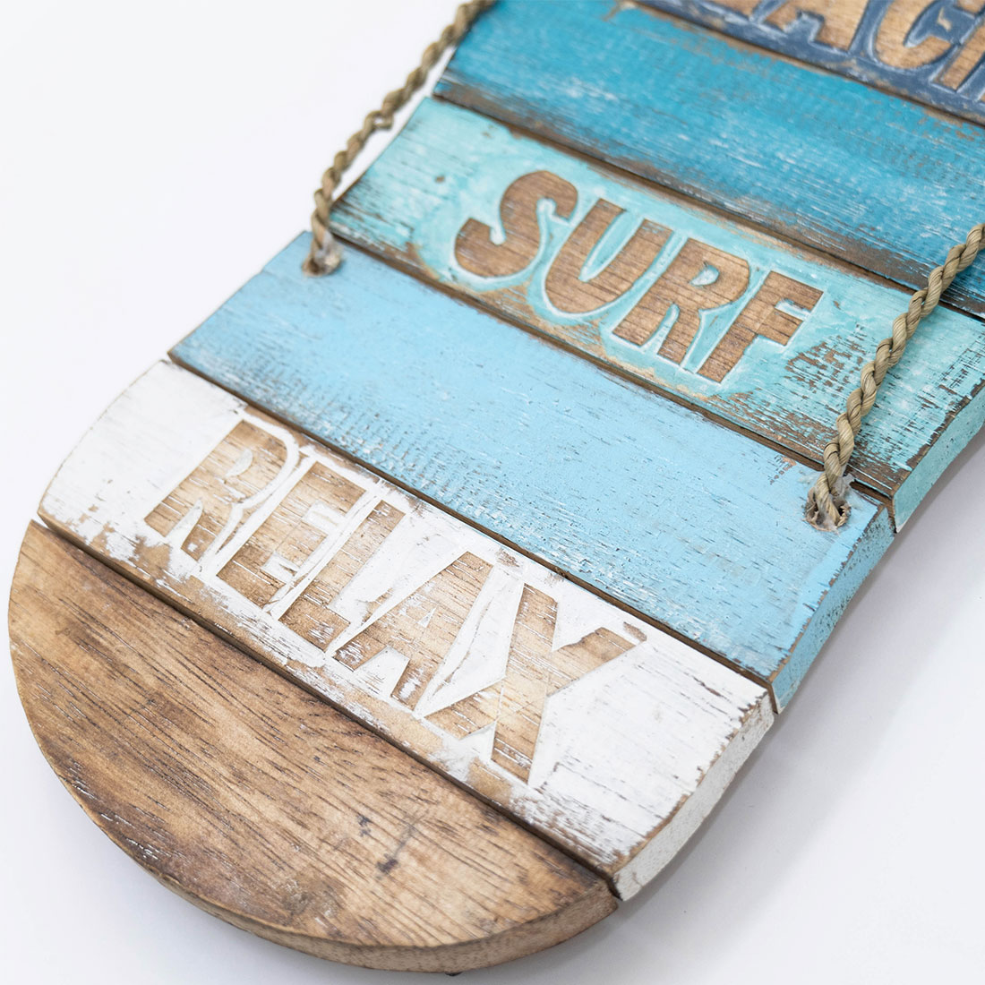 ビーチサンダル型のボードに、海のようなグラデーションのペイントを施したボード。扉や壁などマリンテイストを演出したい場所に飾るだけでビーチ気分に♪