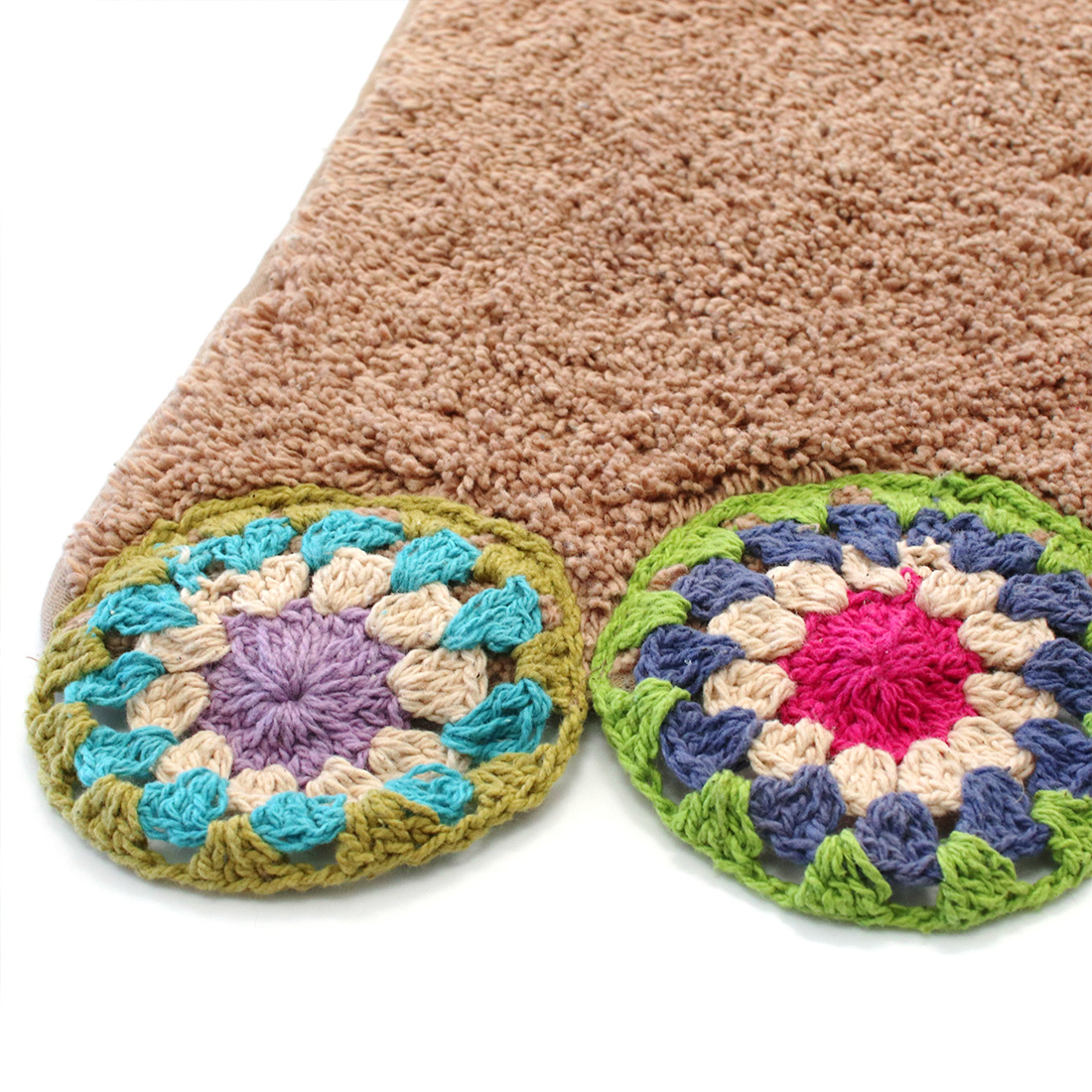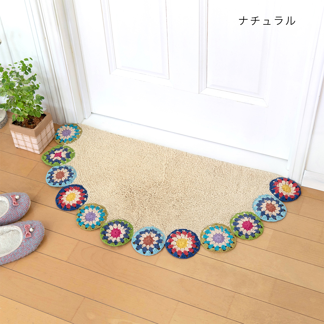 カラフルなクロシェ編みが可愛い半円状のマットです。