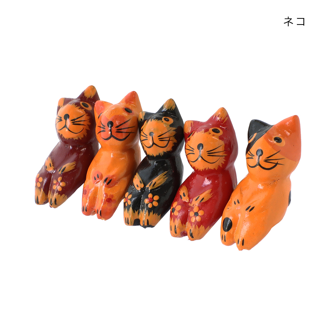 ミニサイズのカエルと猫のお座りインテリアアイテム。