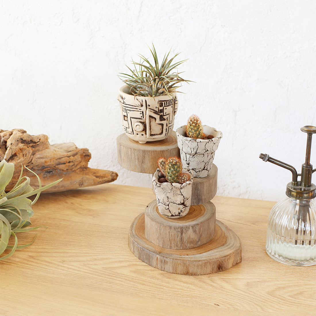 切り株が3段あるのであれこれおくことができます。お気に入りの物をおいて飾ってみるのがオススメ。