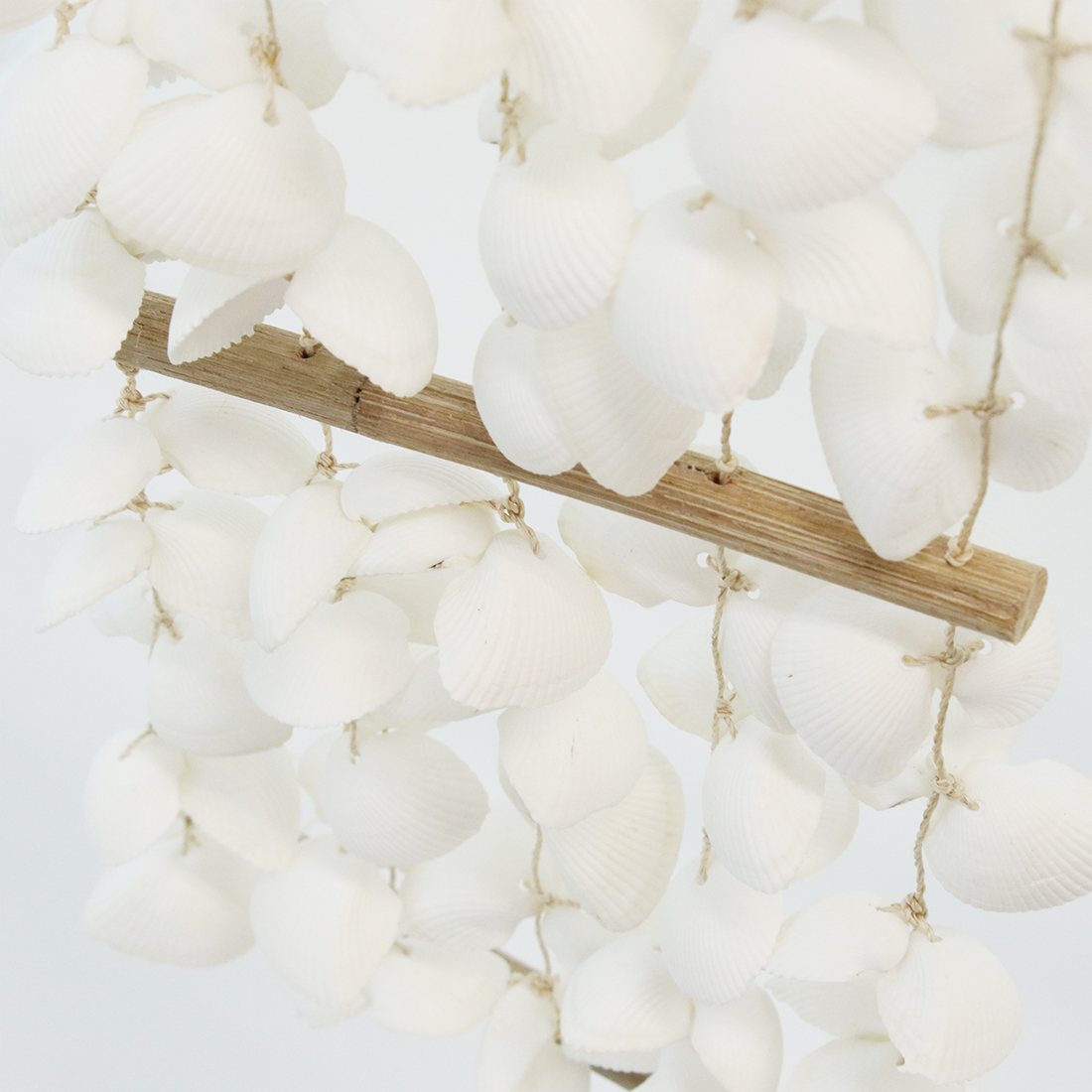 ホワイトシェルが連なったオーナメントは、マリンテイストだけでなくナチュラルテイストなお部屋のアクセントにも。お部屋でも海を感じられます。※天然の貝を加工しているため、不揃いであったり少々欠けている場合があります。ご了承ください。