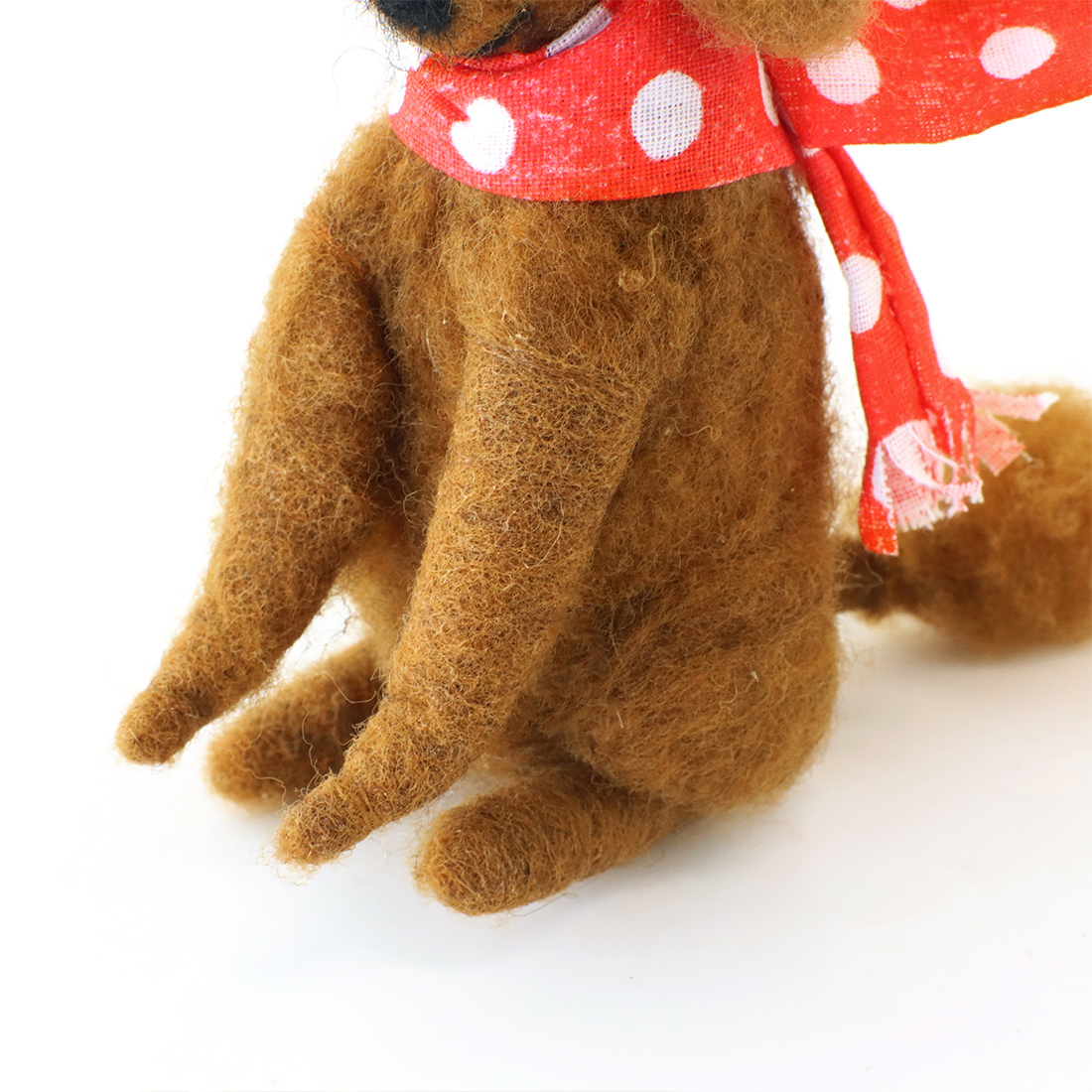 水玉模様のスカーフを巻いたキュートなトイプードルのフェルトオブジェ。手仕事ならではの1つ1つ微妙に違う表情と素朴な風合いに心がホッと和みます。他のフェルトアニマルたちと一緒に並べて、賑やかな空間を演出。心温まるフェルトの動物たちがお部屋を華やかに彩ります♪