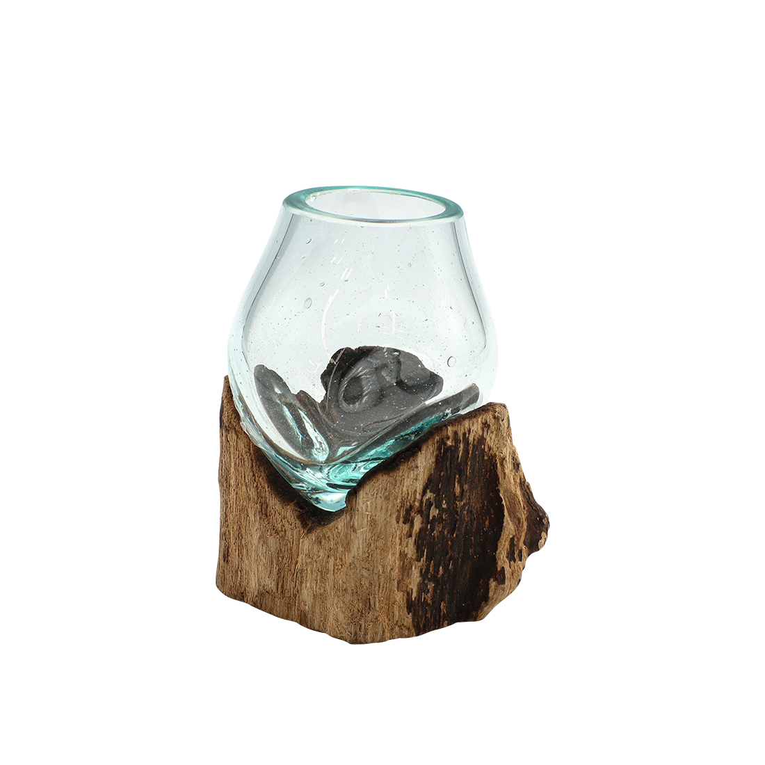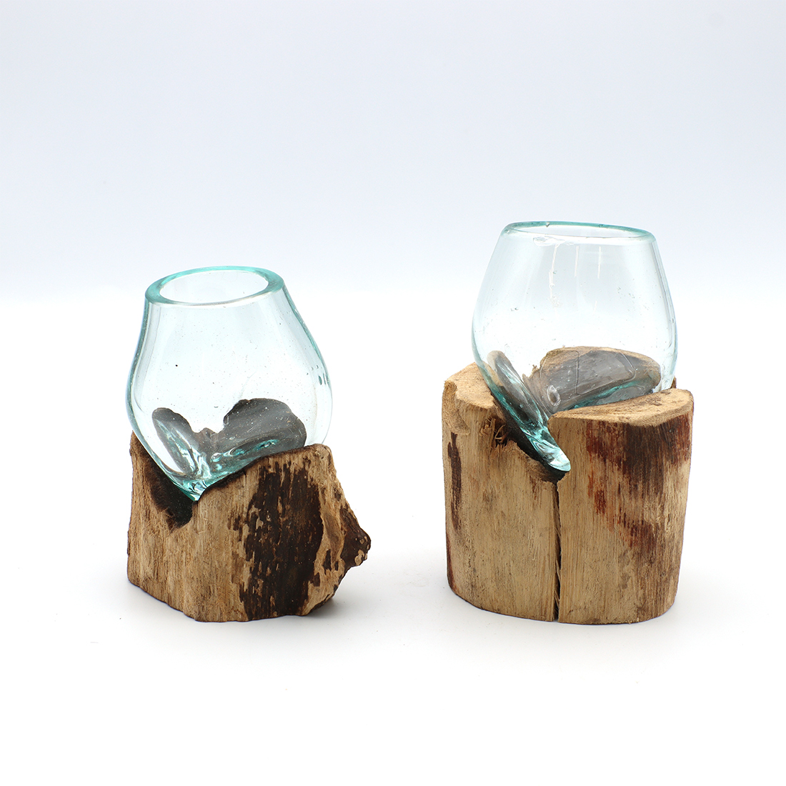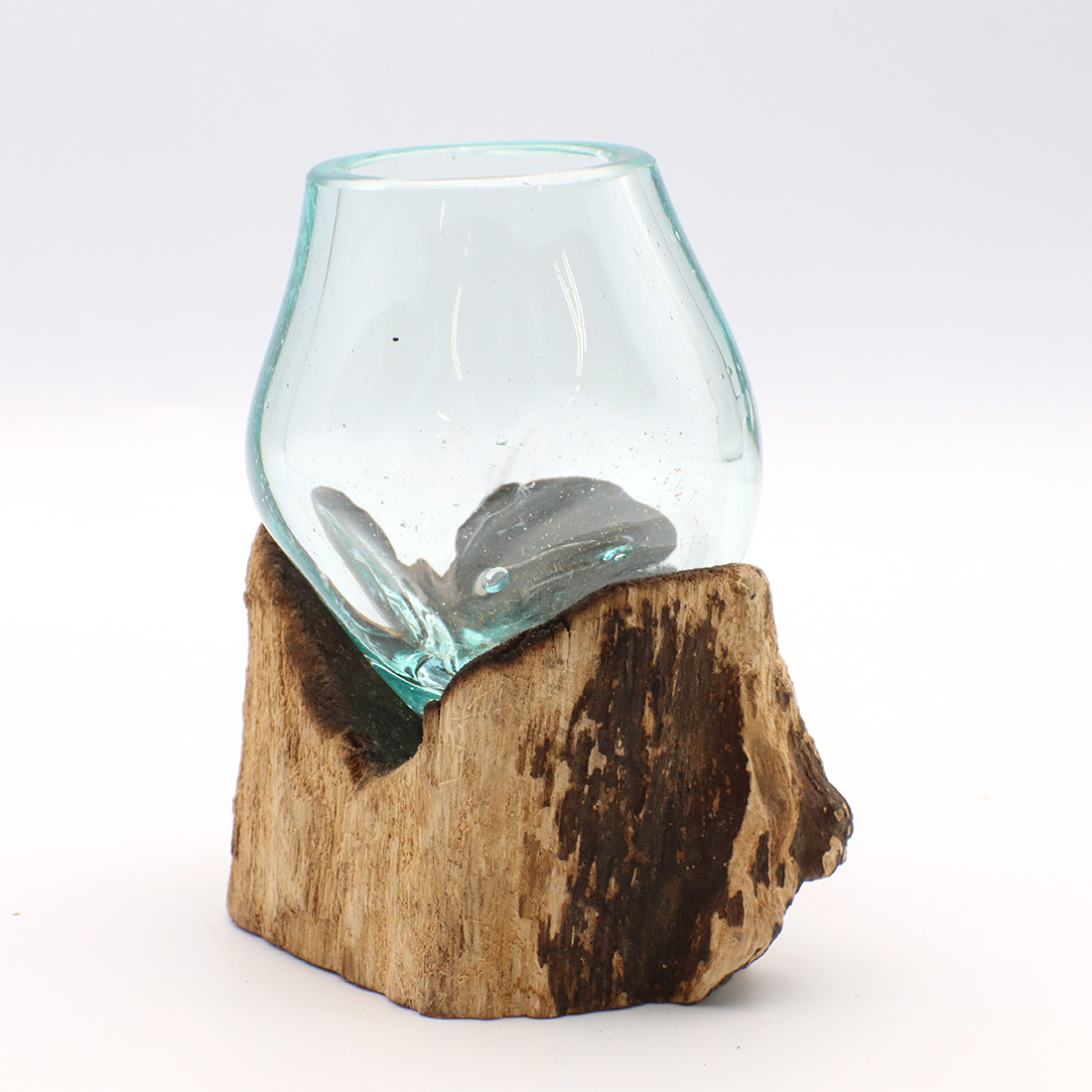 古木にガラスをふきつけて形成しているため、ガラスや木の形はひとつひとつ異なる、世界に一つだけの組み合わせです。
