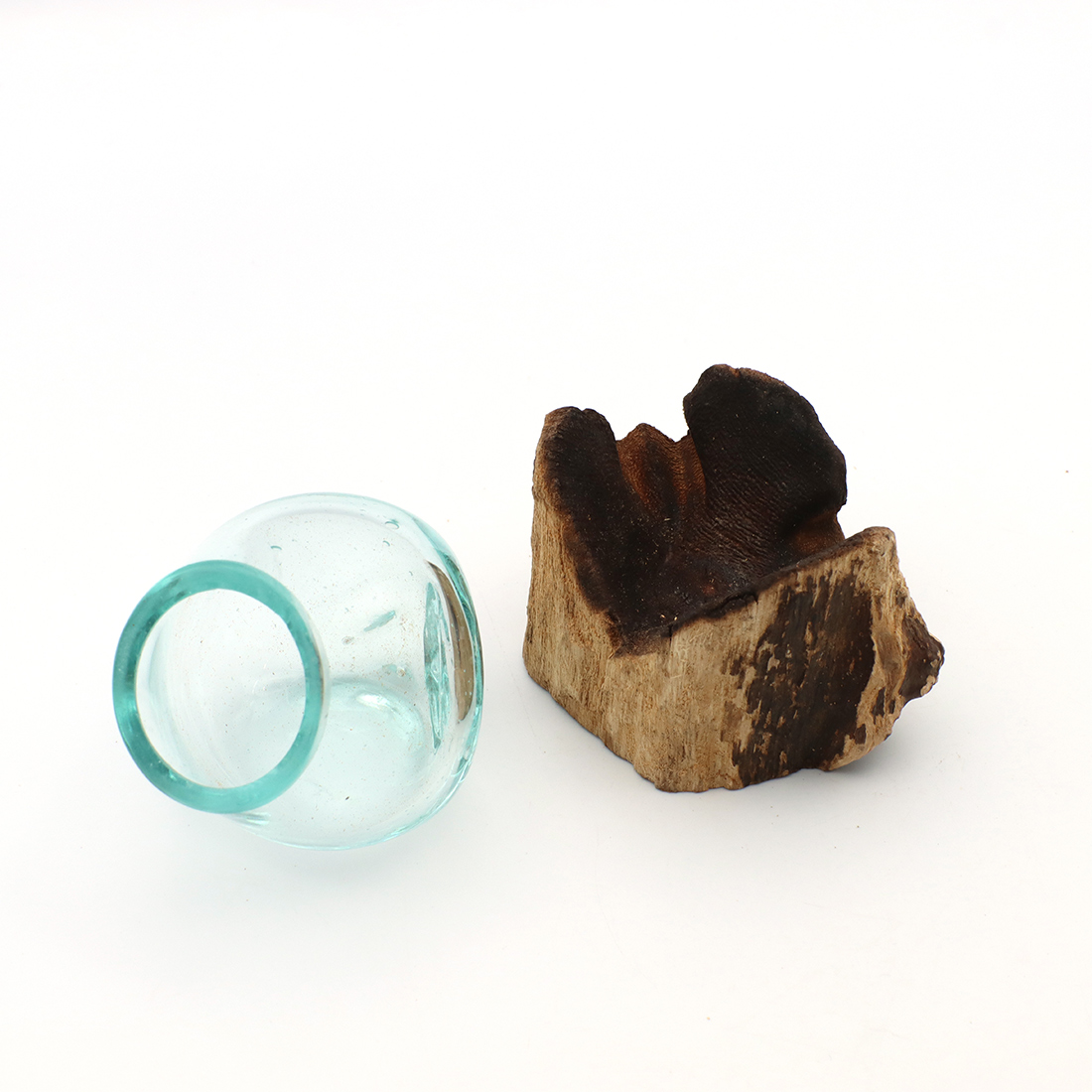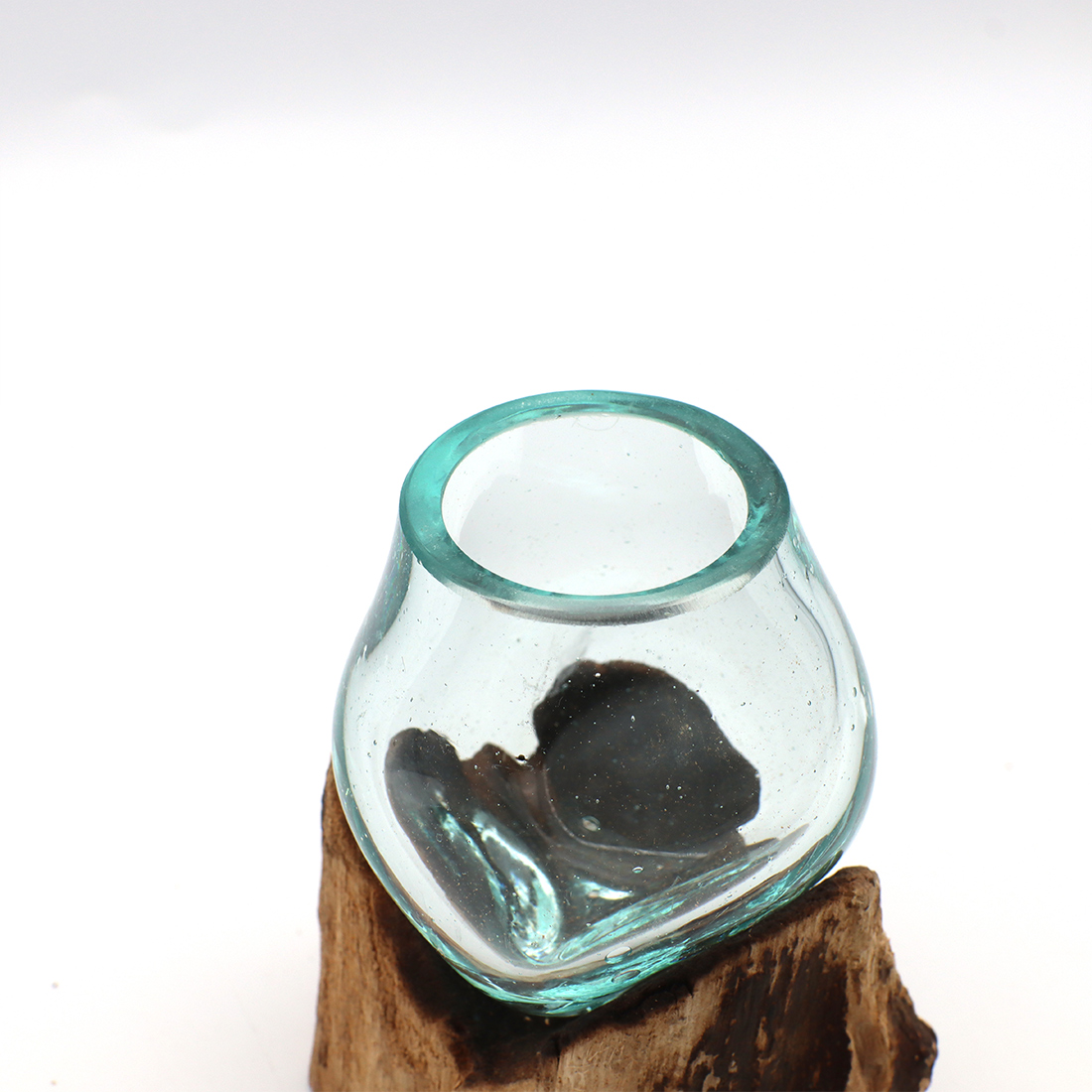 天然木とアクアリウム型の器を組み合わせた手吹ガラス