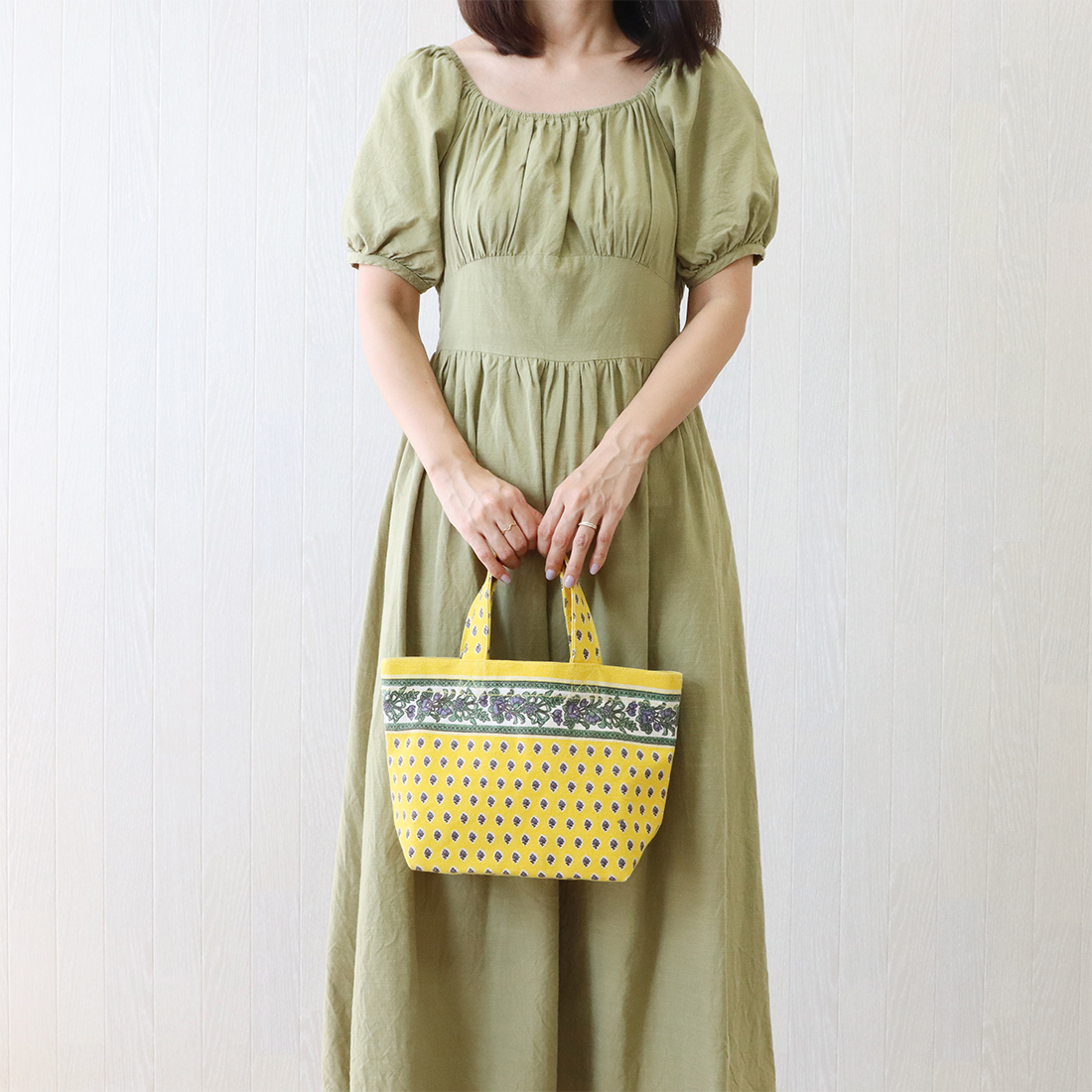 南仏の歴史あるテキスタイルをイメージしたトワルパント(木版プリント)風デザインのトートバッグ。プロヴァンスの自然を連想させる華やかな色彩がお出かけを楽しくしてくれます。「アヴィニヨン」はフランス南東部のローヌ川のほとりにあり、中世の城壁に囲まれた世界遺産の街です。