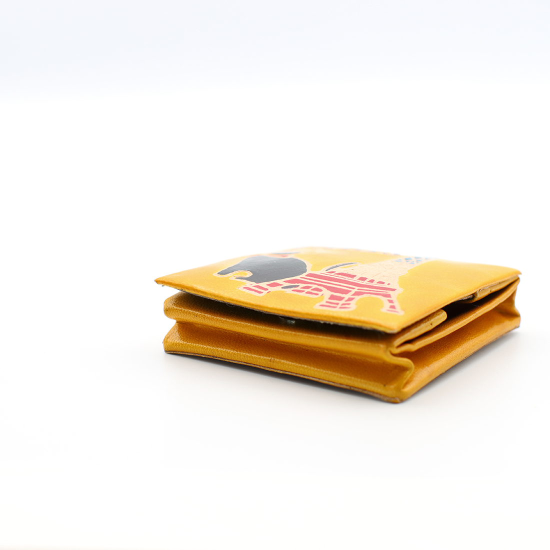 ポケットやカバンの内ポケットに入れて小銭や小物などの整理にどうぞ。山羊革に型押しで模様をデザインし、カラフルにペイントしています。